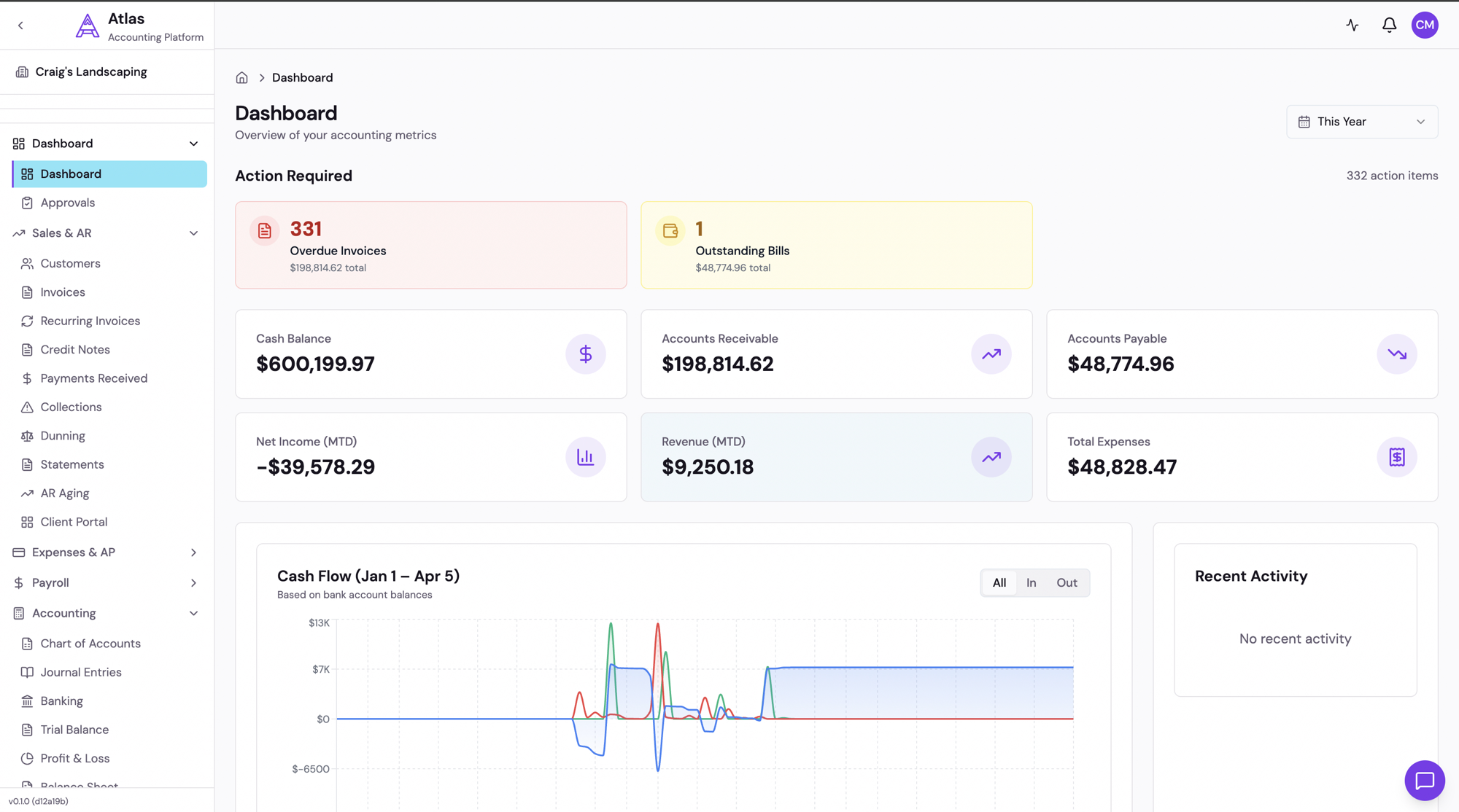 Full GAAP-compliant double-entry accounting with journal entries, chart of accounts, and audit trail.